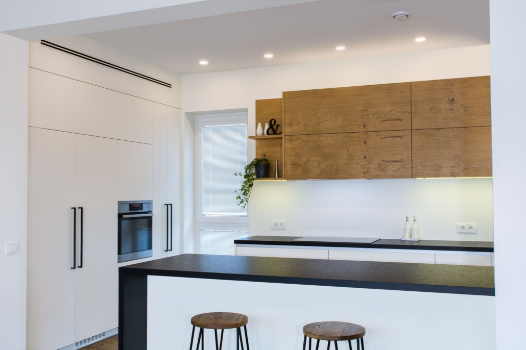 Kuchnie na wymiar w 2024 roku będą coraz częściej integracją z przestrzenią mieszkalną, tworząc spójne i otwarte wnętrza. Kuchnia przestanie być zamkniętym pomieszczeniem, stając się częścią salonu czy jadalni. Otwarte półki, przeszklone fronty i lekkie konstrukcje będą sprzyjać tworzeniu wrażenia przestronności. Przejścia między kuchnią a resztą mieszkania będą płynne, co pozwoli na lepszą komunikację i integrację domowników.