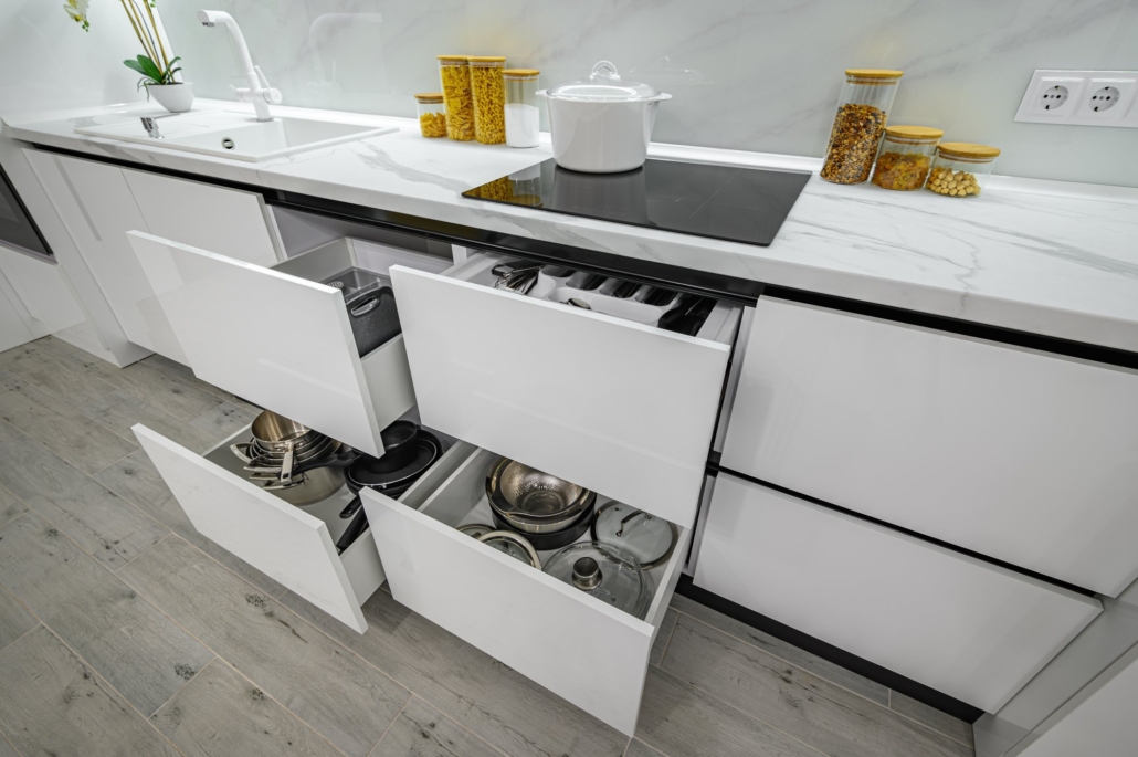 Funkcjonalność zawsze była kluczowym aspektem w projektowaniu kuchni na wymiar, a w 2024 roku nie będzie inaczej. Ergonomia będzie odgrywać jeszcze większą rolę, z naciskiem na wygodne i intuicyjne rozwiązania. Systemy szuflad z cichym domykiem, wysuwane półki, obrotowe kosze narożne i wbudowane organizery to tylko niektóre z elementów, które poprawią funkcjonalność kuchni. Optymalne wykorzystanie przestrzeni i łatwy dostęp do przechowywanych przedmiotów sprawią, że kuchnie będą bardziej praktyczne i wygodne w użytkowaniu.